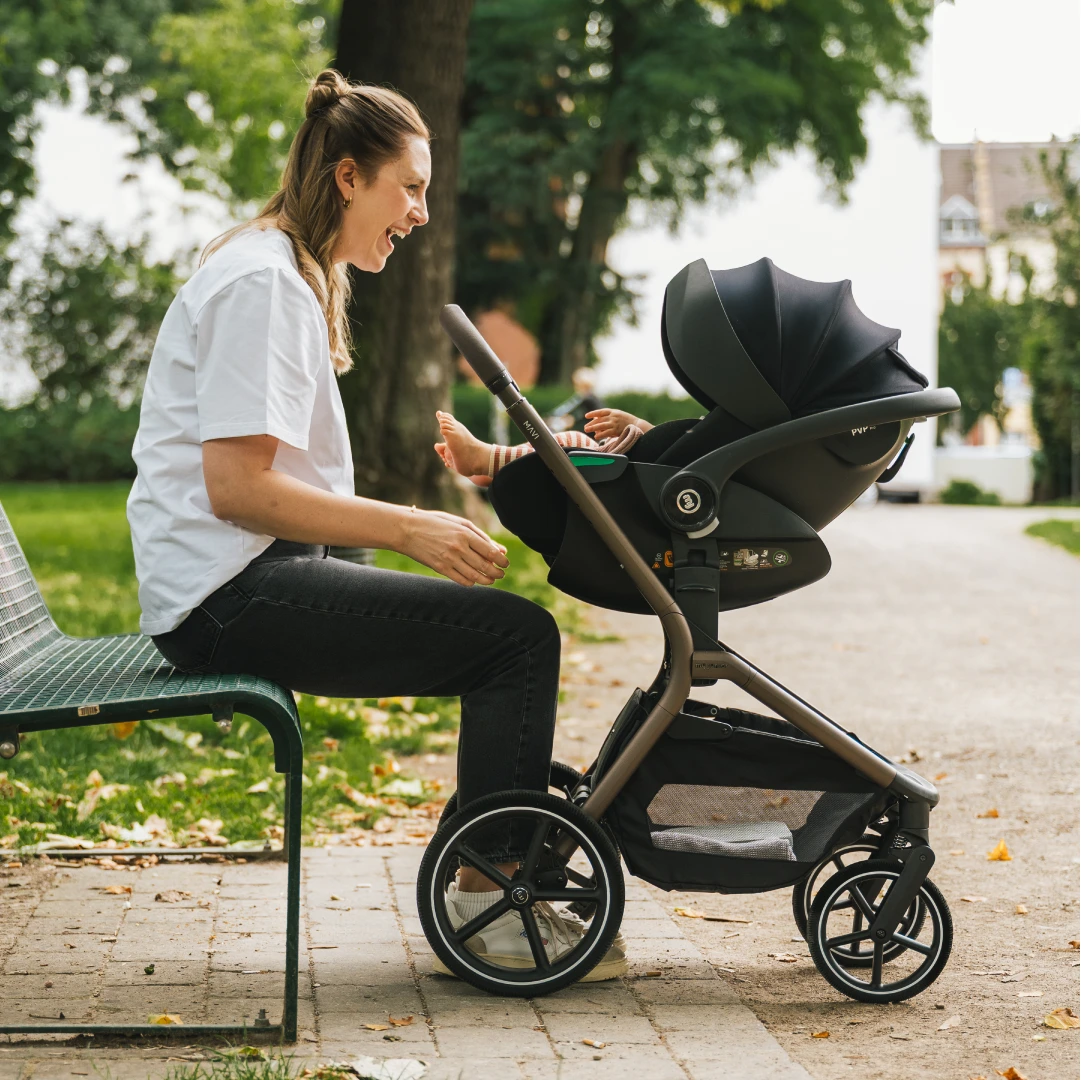 * Doppelte Flexibilität: Dank integrierter Höhenfunktion kannst Du jede Babyschale auf zwei Positionen nutzen – tief für unterwegs, hoch für mehr Nähe und rückenschonendes Handling.