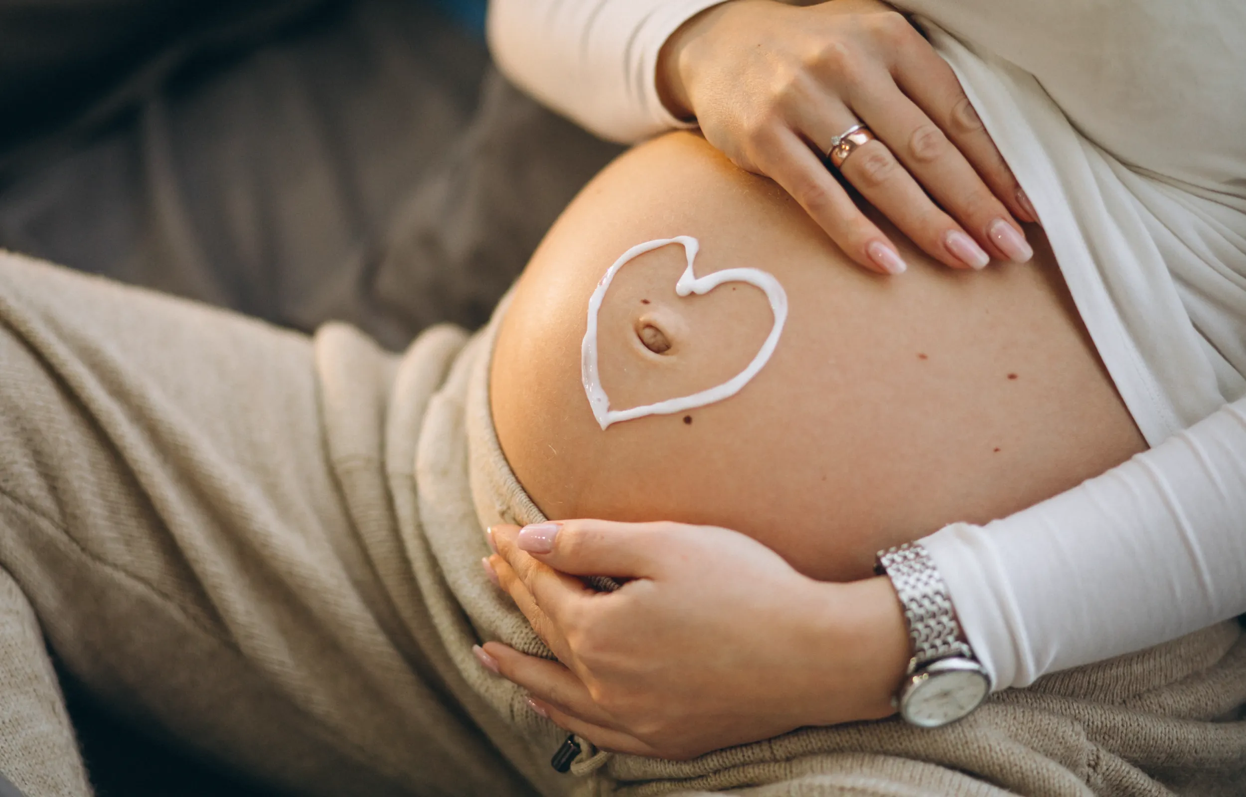 Deine Haut – besonders an Bauch, Brust und Hüften – wird nun stark beansprucht. Pflege mit reichhaltigen Ölen kann Spannungsgefühle lindern und Dehnungsstreifen vorbeugen. Achte außerdem auf bequeme Kleidung und ausreichend Ruhephasen, um Dein Wohlbefinden zu stärken.