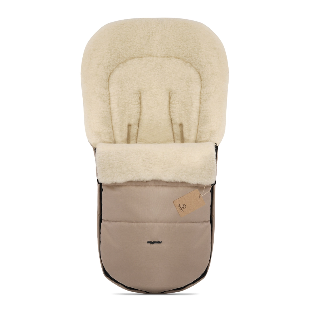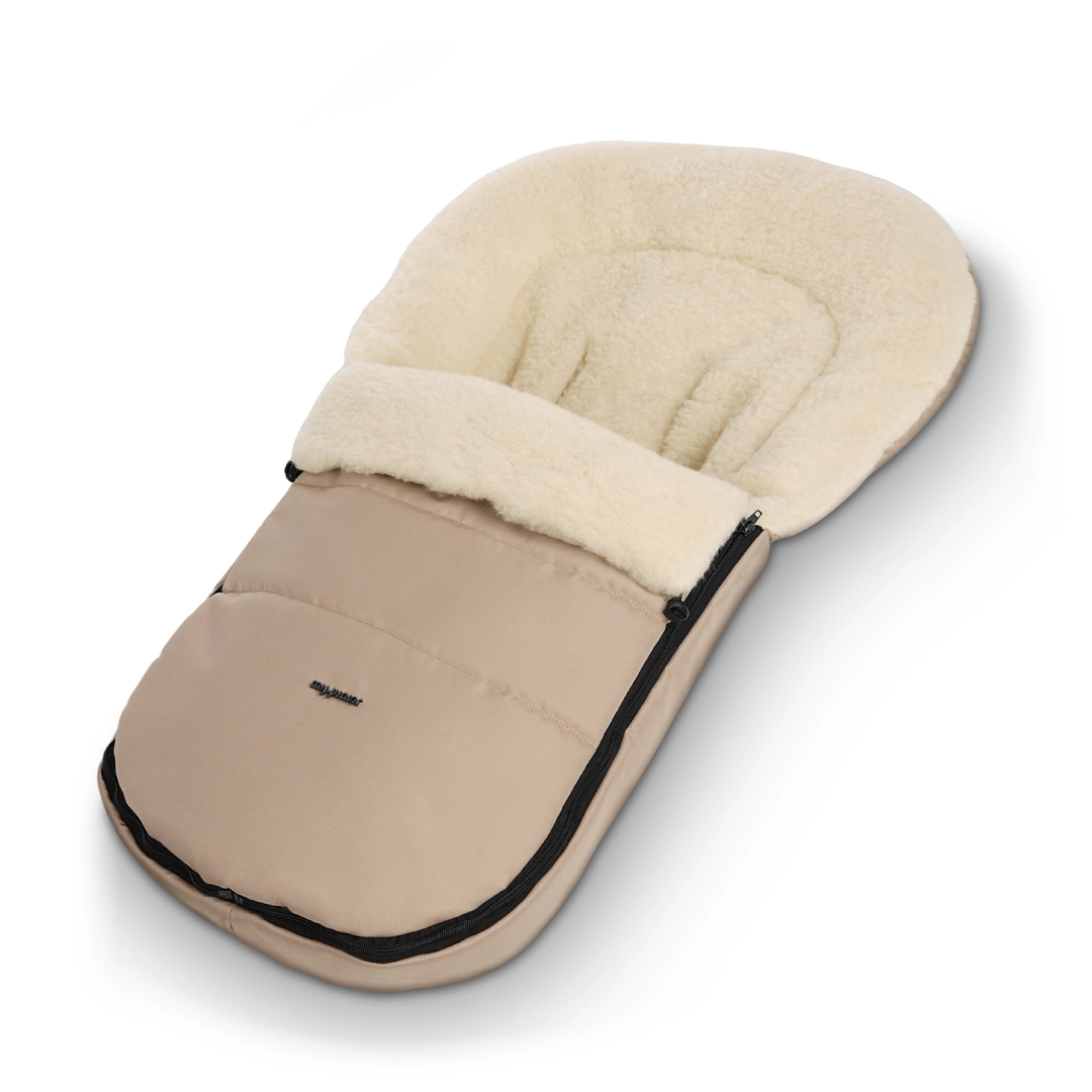 Der Fußsack mit einem Innenleben aus 100 % Schurwolle sorgt für wohltuende Wärme. Dein Baby ist selbst an kalten Tagen geborgen und warm eingehüllt.