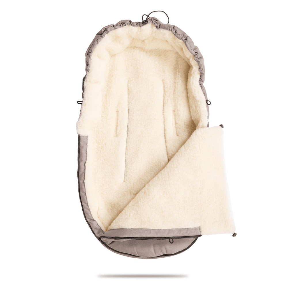 La chancelière avec un intérieur en laine vierge 100 % procure une chaleur agréable. Ton bébé est bien au chaud et protégé, même pendant les jours froids.
